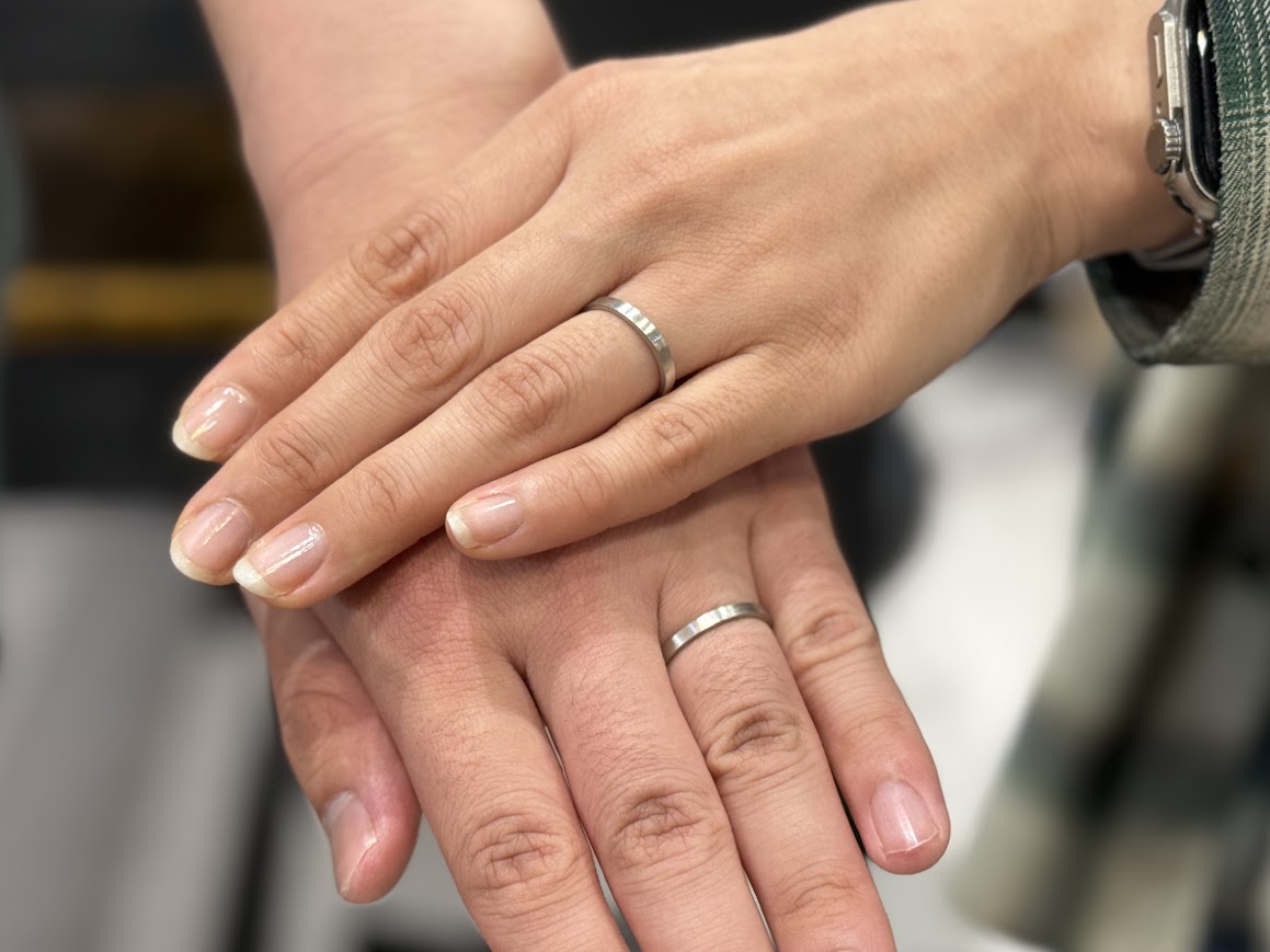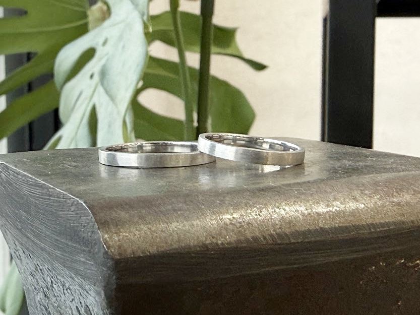 佐野市からご来店|プラチナの手作り結婚指輪|ふたりでつくる平打ちリング艶消し仕上げ