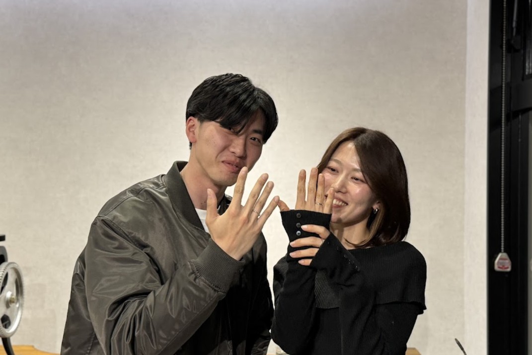 出来上がったリングは、ふたりの手で作った特別なペアリングになりました。