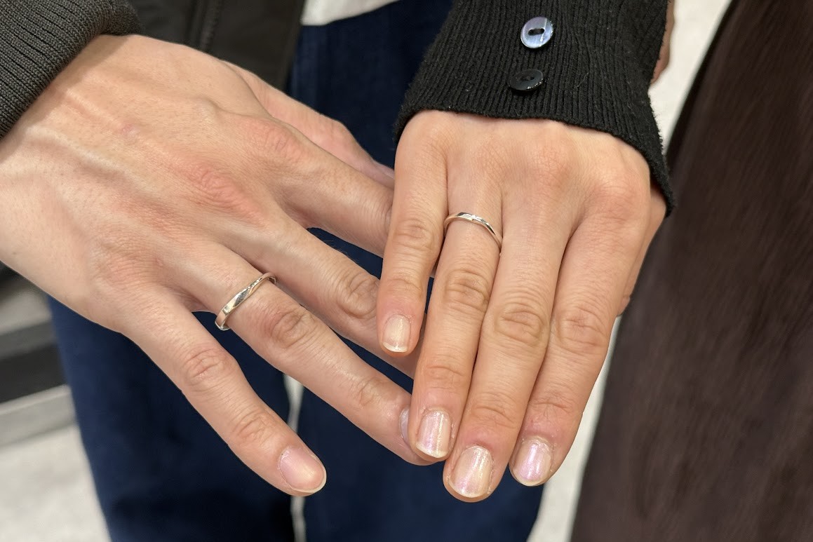 おふたりが作られたのは、ひねり加工を加えたシルバーのペアリング。